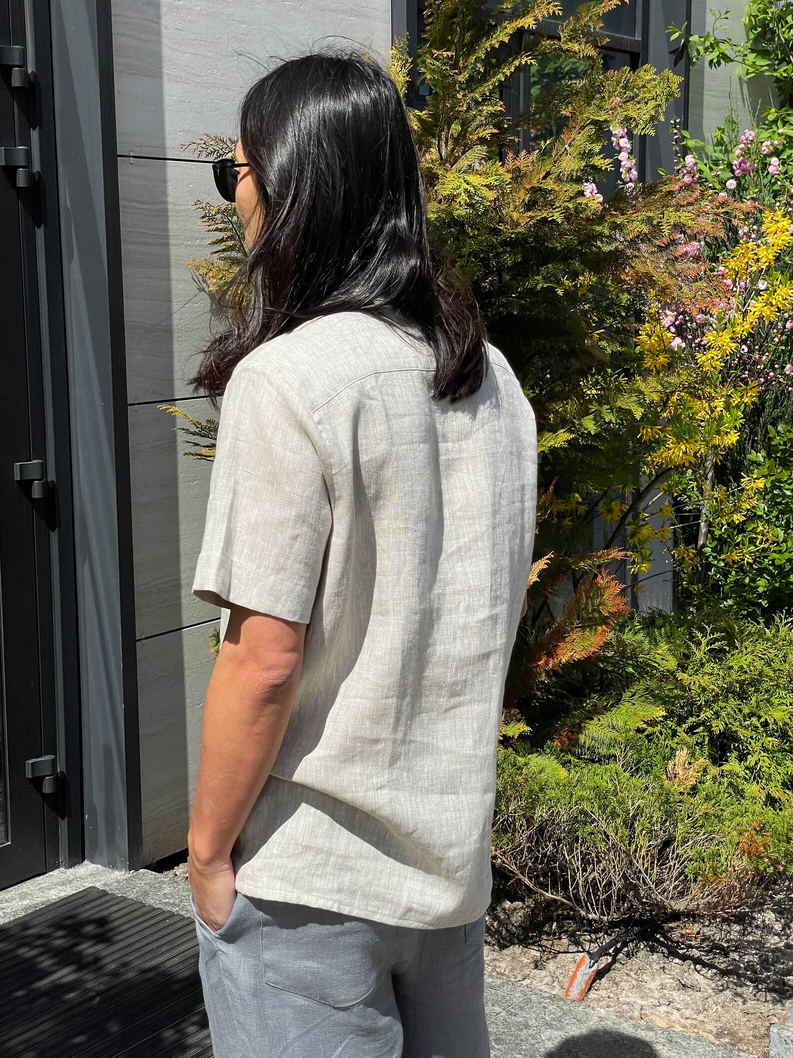 - Lovingly handmade, resulting in a unique and stylish garment. This quality linen top offers both comfort and timeless appeal. The breathable fabric makes it ideal for everyday wear, while the Henley neckline adds a touch of classic charm. A versatile addition to any man's wardrobe, easily dressed up or down. Perfect for smart-casual occasions or relaxed weekends. Experience the quality of handmade craftsmanship with this unique piece.