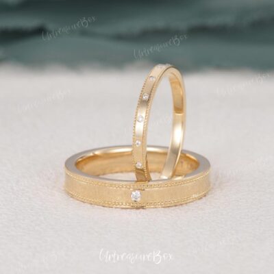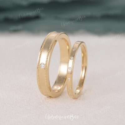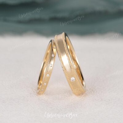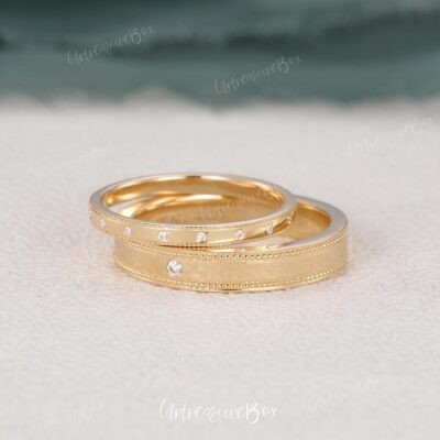 Stunning Milgrain Couple Rings: Unique Moissanite Wedding Bands for Everlasting Love
