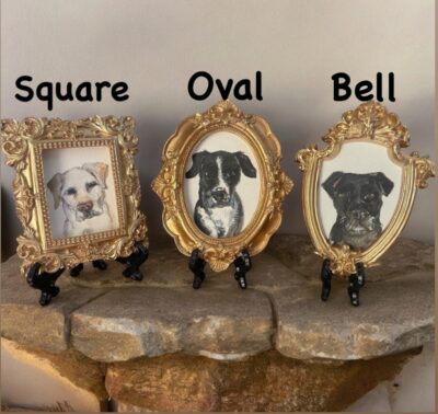 - High-quality materials and meticulous attention to detail for lasting beauty and enjoyment. These charming, hand-painted miniature portraits perfectly capture your pet's individual character. Each piece is lovingly crafted and framed in a vintage-style ornate frame, adding a touch of class to any room. A truly unique and personal piece of art, custom-made to your requirements. The ideal present for any animal enthusiast or a treasured memento for you. Built to last using only the finest materials.