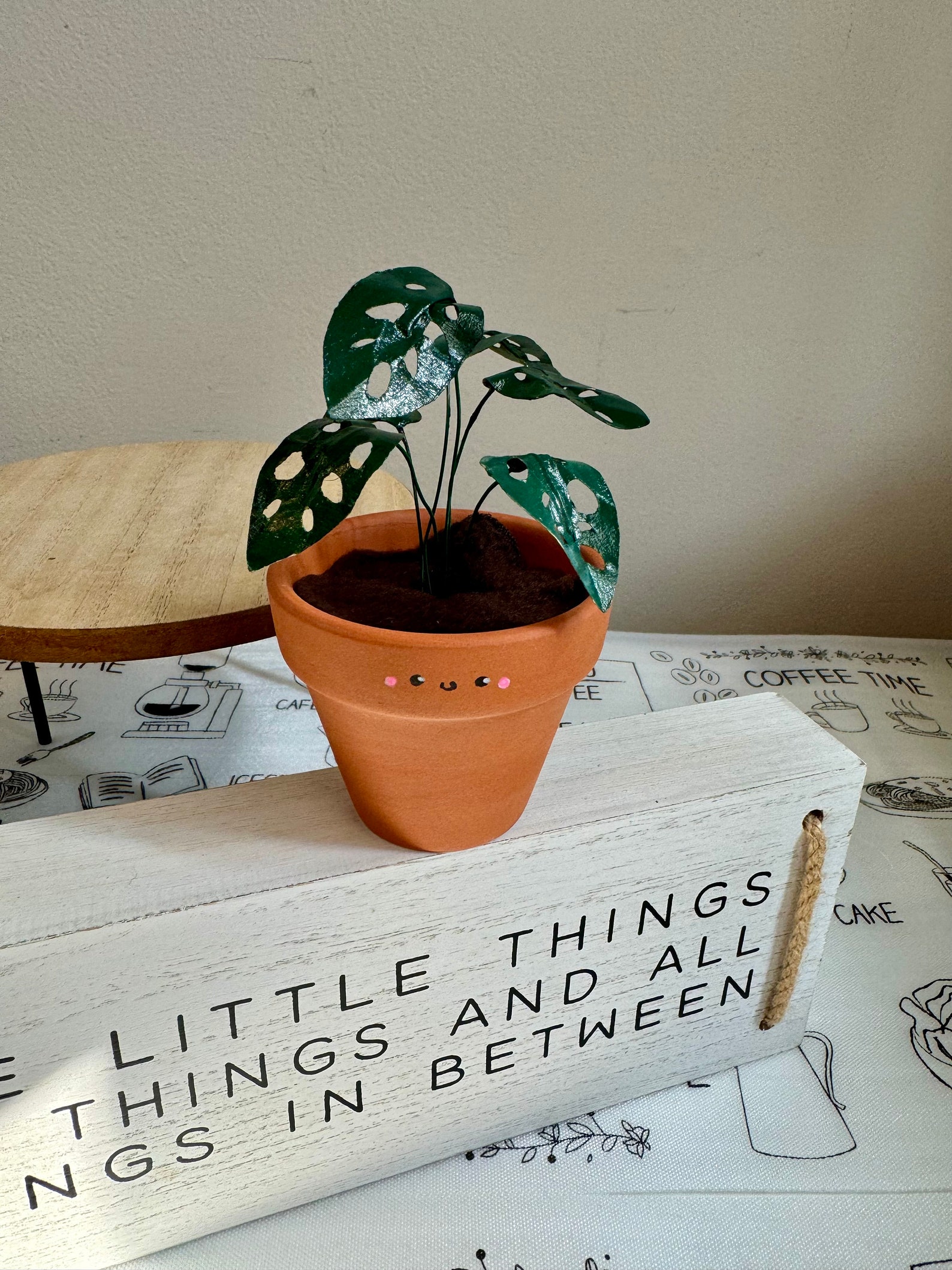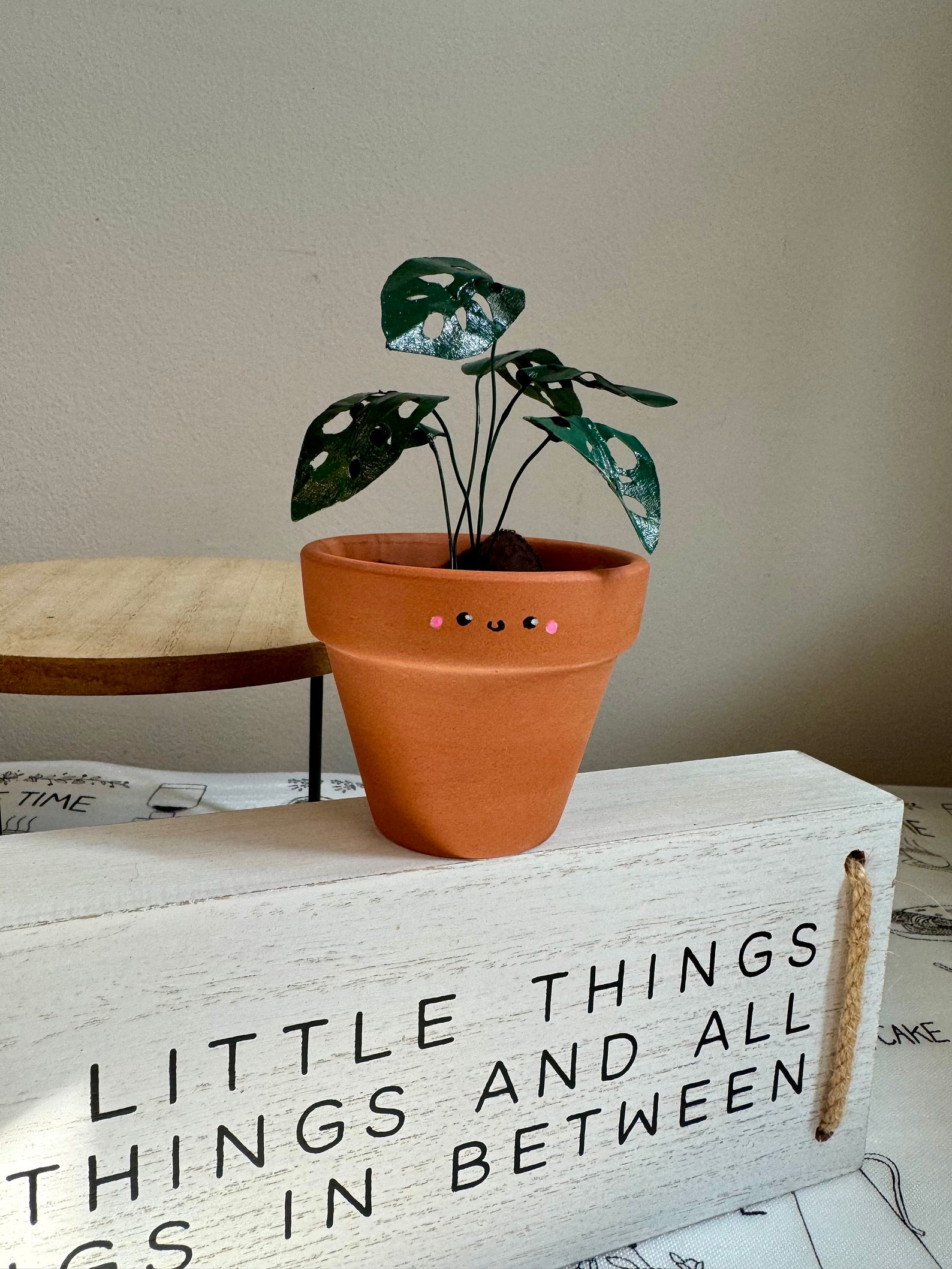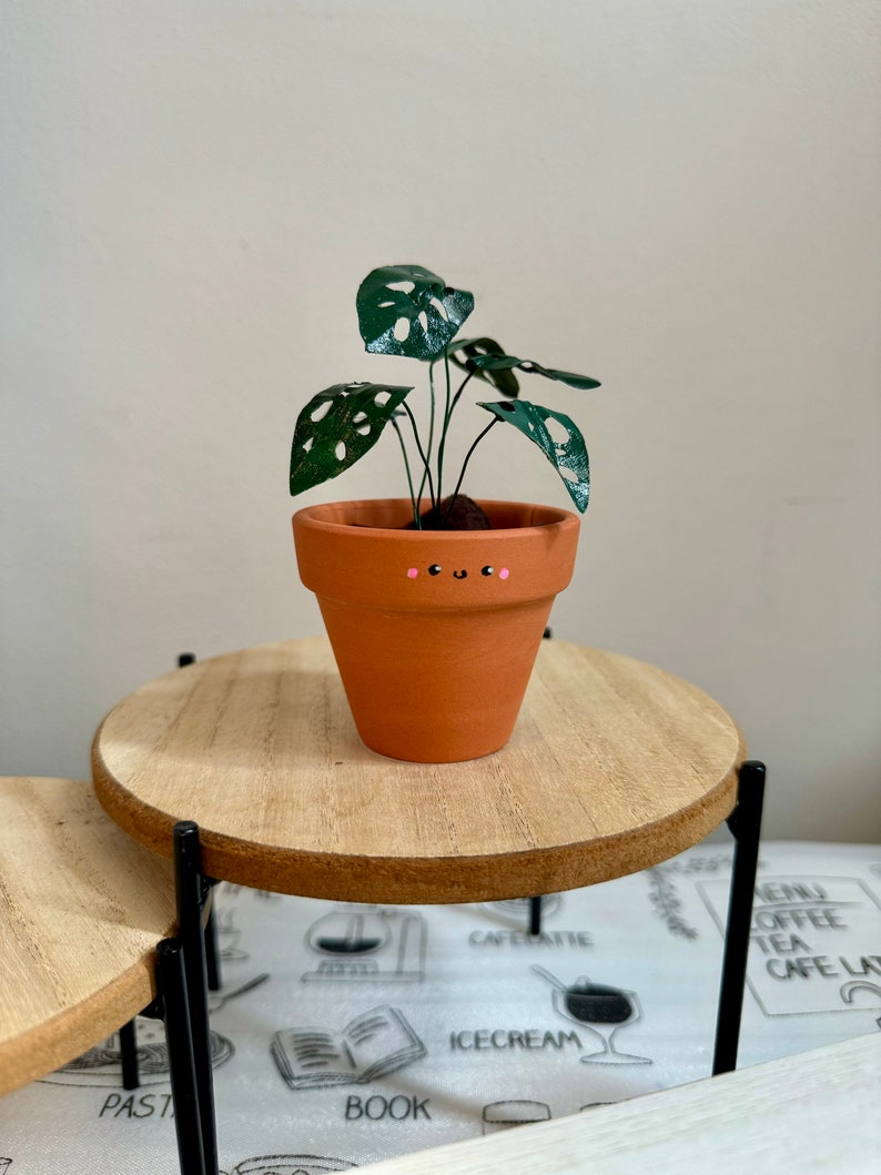 - A unique and eye-catching home dcor piece, perfect for adding a touch of greenery to any room. This charming, handcrafted miniature paper plant features meticulously hand-painted leaves, replicating the distinctive Swiss Cheese Plant. Its small size makes it ideal for shelves, desks, or even terrariums. Crafted from high-quality paper and paint for durability, this delightful little plant offers a long-lasting and maintenance-free alternative to real foliage. A brilliant gift idea or a treat for yourself! Spruce up your living space with this adorable and realistic paper Monstera.