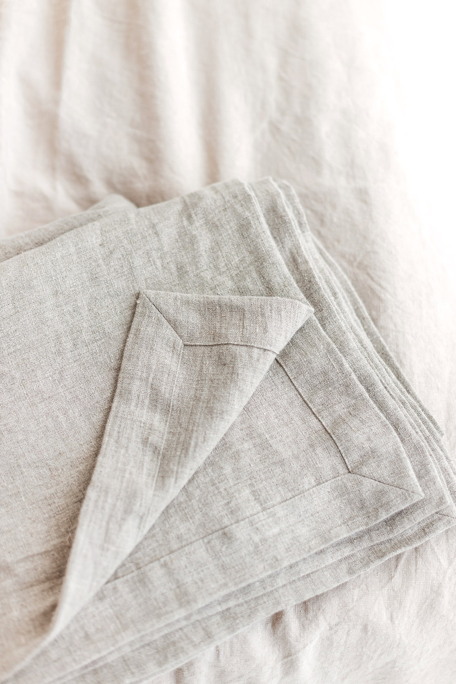 - Undyed, natural linen bedspread with a rustic and charming aesthetic.