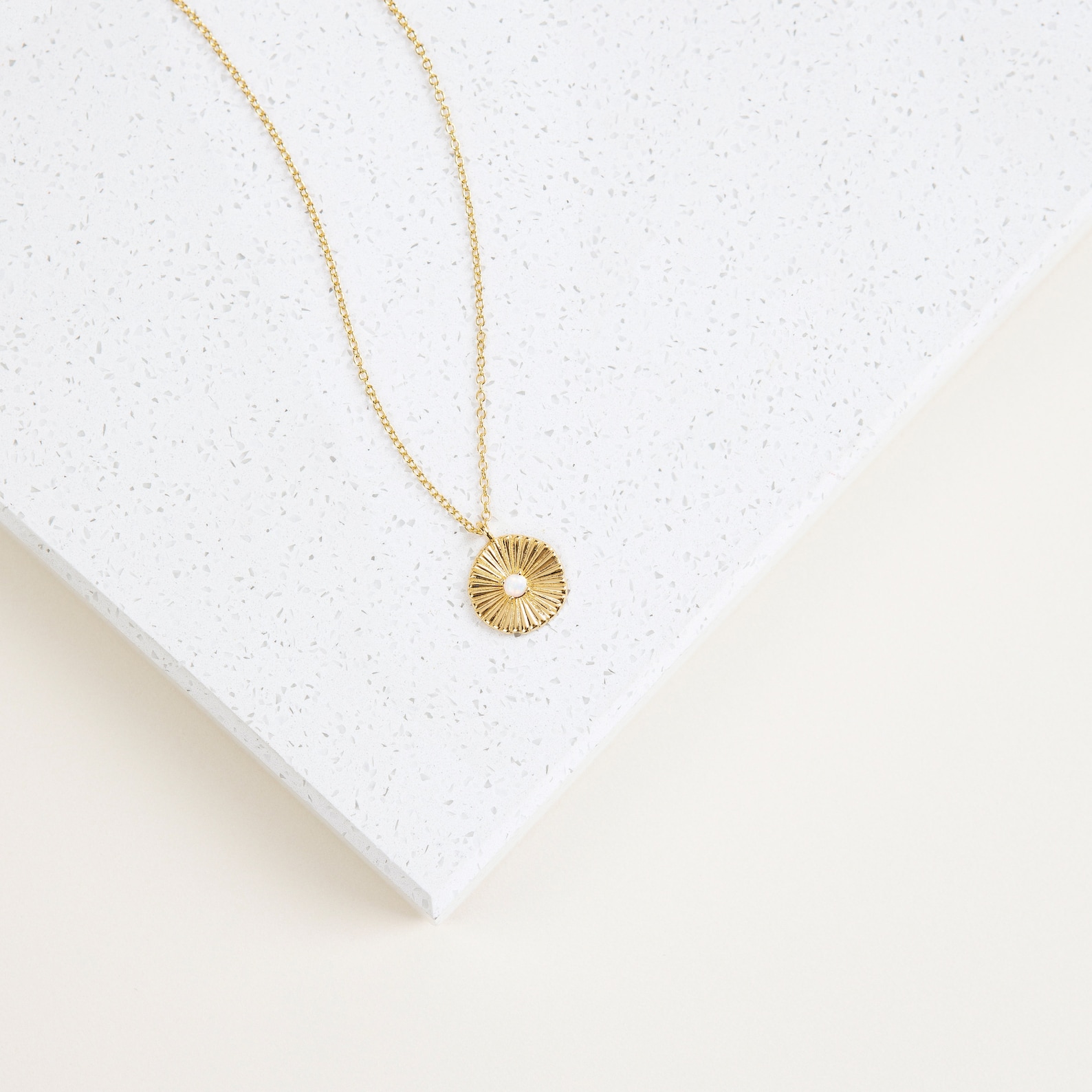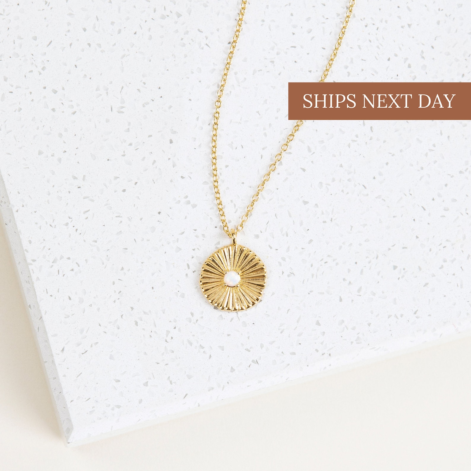 - A delicate and elegant opal medallion necklace, perfect for everyday wear or special occasions.