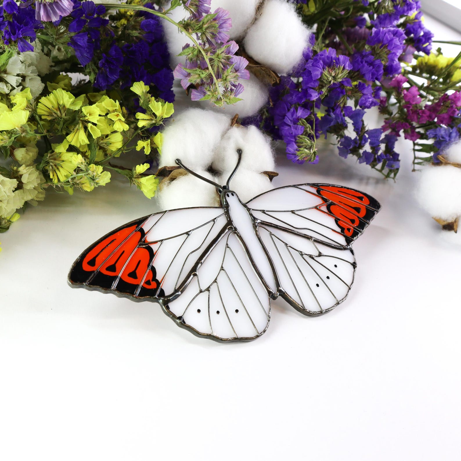 Orange-Tip Butterfly Suncatcher Stained Glass Window Hanging Handmade Gift for Mum Modern Home Decor