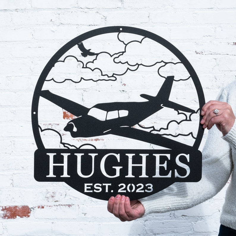 Personalised Aeroplane Metal Wall Art – Custom Pilot Name Sign for Hangar, RAF, Father’s Day