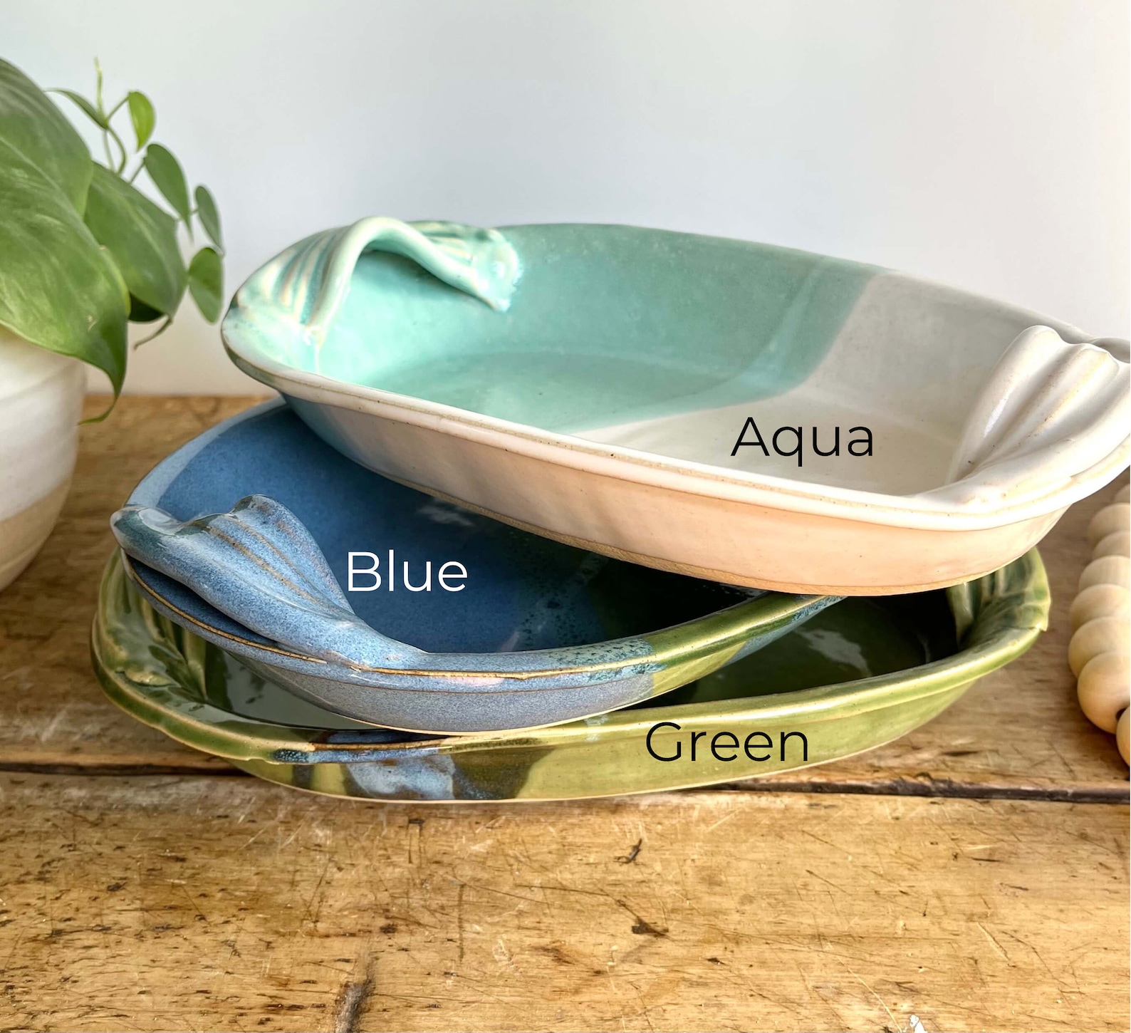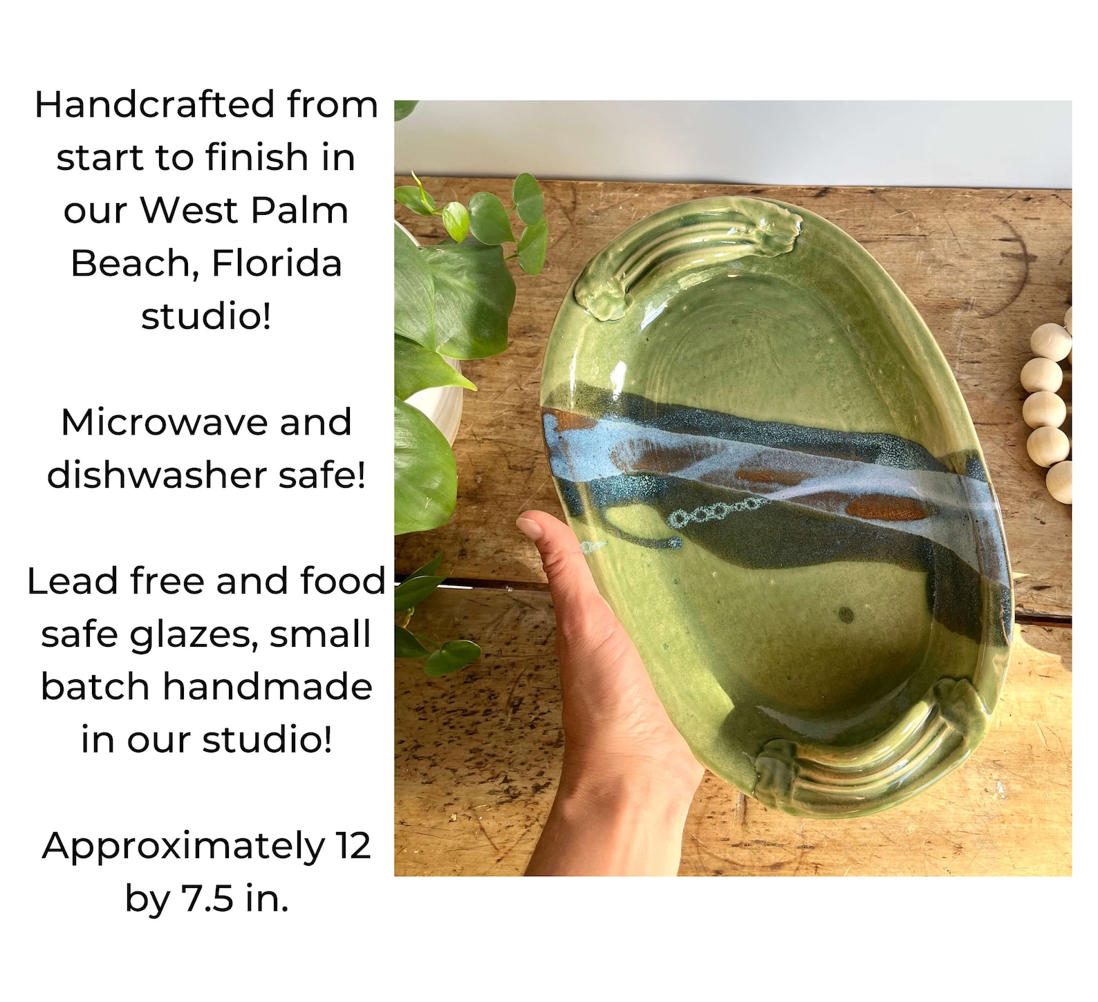 Handmade Green Ceramic Serving Platter: Stylish for Parties & Home