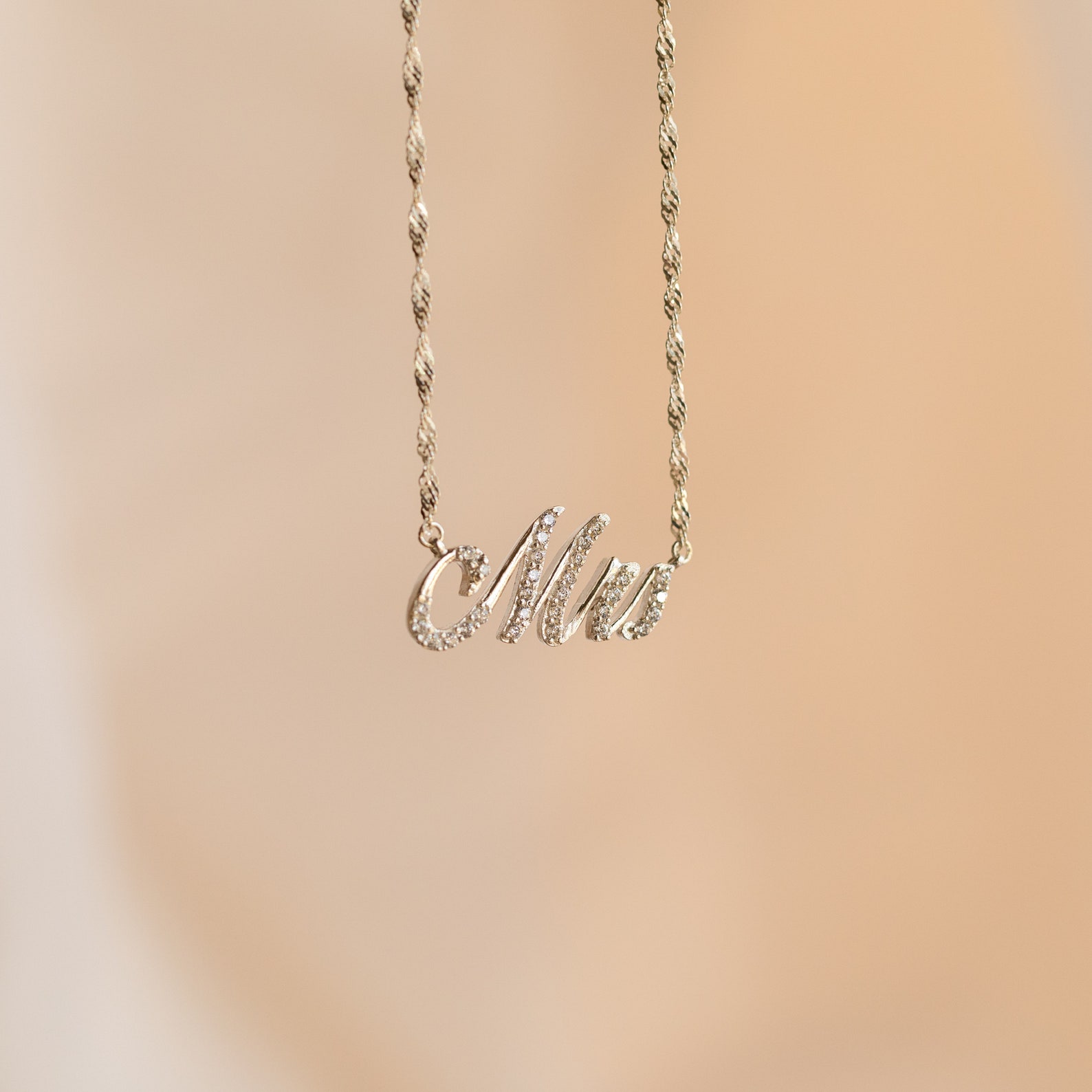 Bespoke Diamond Twist Chain Name Necklace in Pave Script for Her (NM132F109)