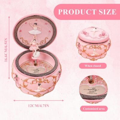 A Timeless Keepsake: This personalised ballerina musical carousel is more than just a music box; it's a cherished heirloom designed to be treasured for generations. Imagine the delight on a little girl's face as she watches the graceful ballerina twirl to a sweet melody.