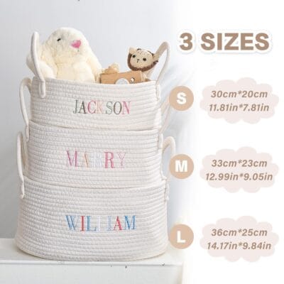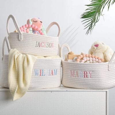 Personalised Baby Gift Hamper Custom Rope Basket for Showers, Toys