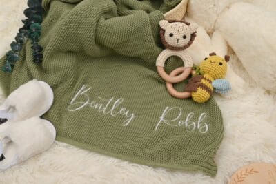 Personalised Baby Blanket Embroidered Name, Soft Cotton Knit Ideal Newborn/Christmas Gift