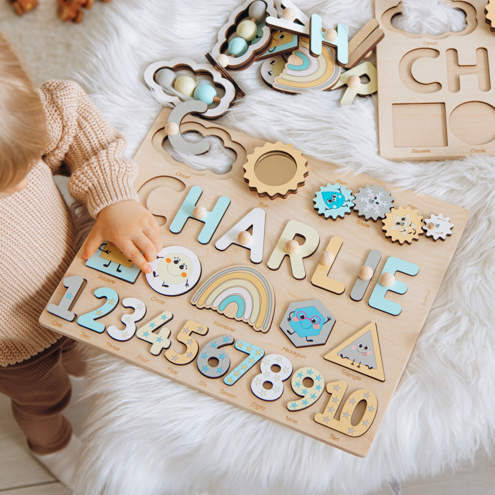 * Montessori-Inspired Design: Adhering to Montessori principles, this busy board promotes independent learning, self-discovery, and hands-on exploration, helping toddlers develop essential skills in a playful manner. Visually appealing and stimulating, it encourages interaction and learning through play. The personalised name puzzle adds extra engagement, helping children recognise and spell their names. More than just a toy, it's a valuable educational tool, perfect for birthdays, holidays, or any special occasion. Lightweight and portable, it's easy to take on the go and simple to clean. A wonderful way to encourage your child's development and creativity, it's an item to be treasured for years.
