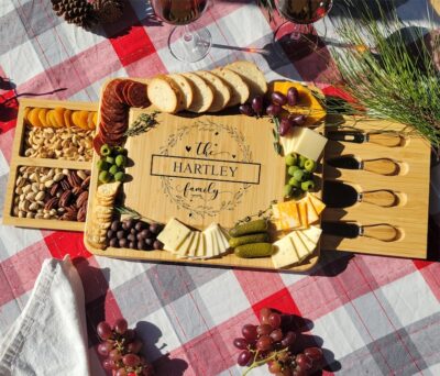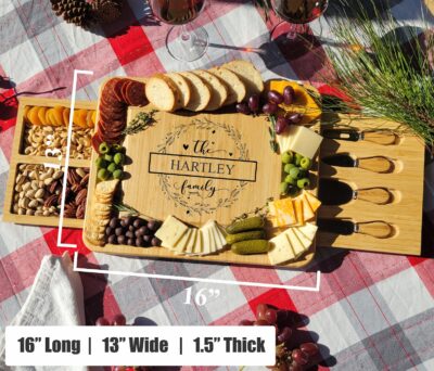 - Easy to clean and maintain, this personalised charcuterie board will become a cherished addition to any kitchen or dining room.