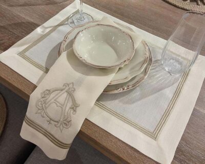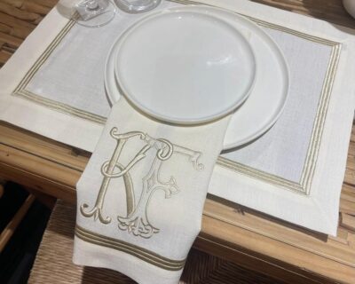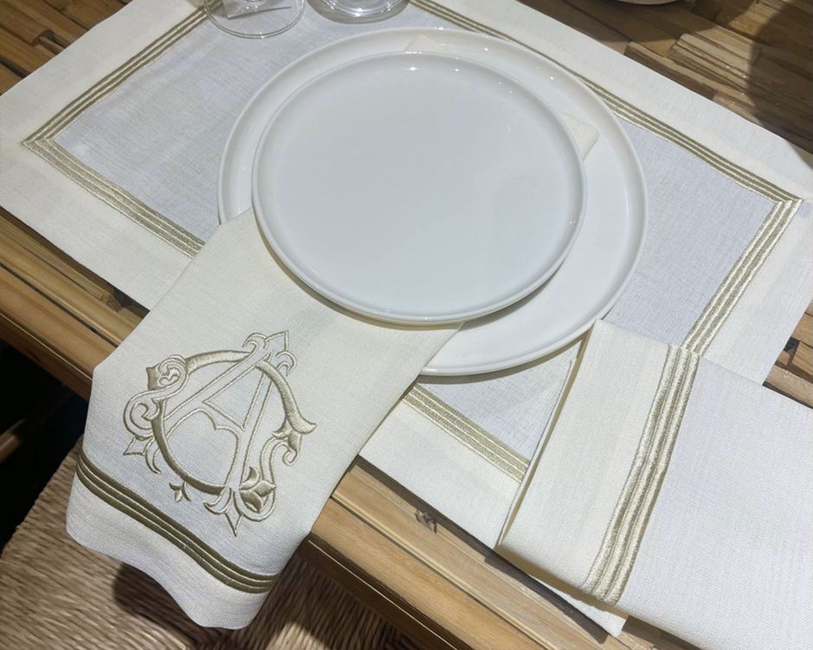 - Exquisite embroidered napkins, placemats, and table runners, personalised with your own monogram.