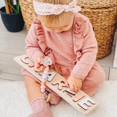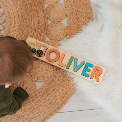 - Delight your little one with this bespoke name puzzle, featuring their name in bright, cheerful colours.