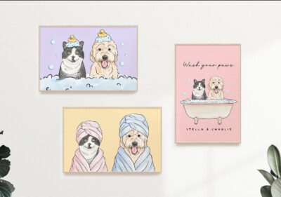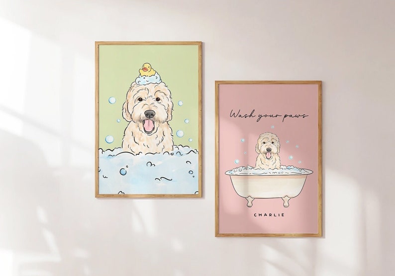 - Brighten up any room with these charming pet-themed prints. Perfect for adding a personal touch to your home decor, these custom portraits and humorous bathroom scenes are sure to raise a smile. A unique and thoughtful gift for any pet owner, these prints are ideal for Father's Day, birthdays, or just because. Create a lasting memory of your beloved pet or bring a bit of fun to the bathroom with these delightful art pieces. These prints are a great way to show off your love for your furry friends and add a touch of personality to your walls.