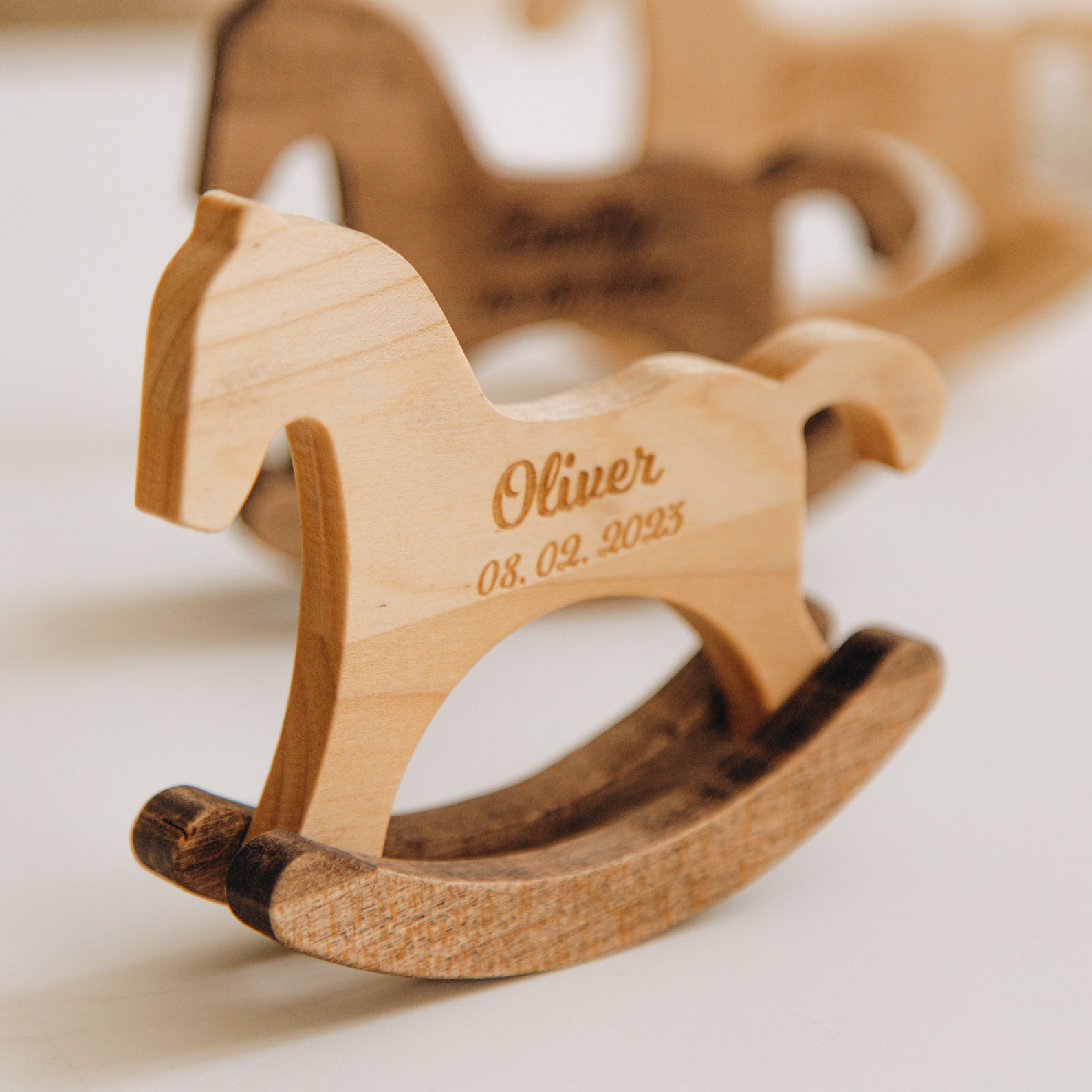 Personalised Rocking Horse Eco-Friendly Wooden Toy, Unique Baby Shower Gift