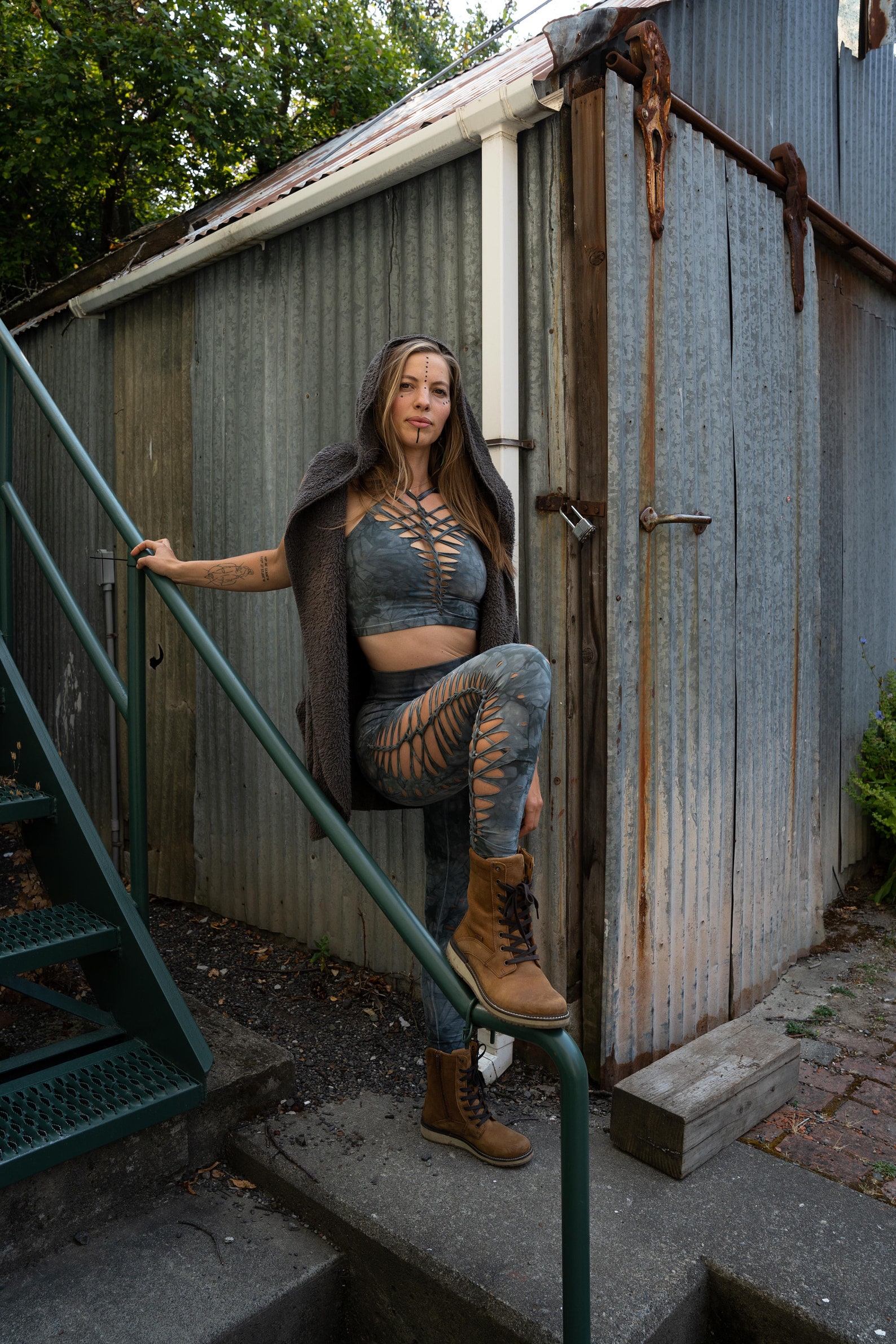 Pewter Crop Top & Hand-Dyed Yoga Slit Weave Fire Hula Hoop: Unleash Your Inner Goddess