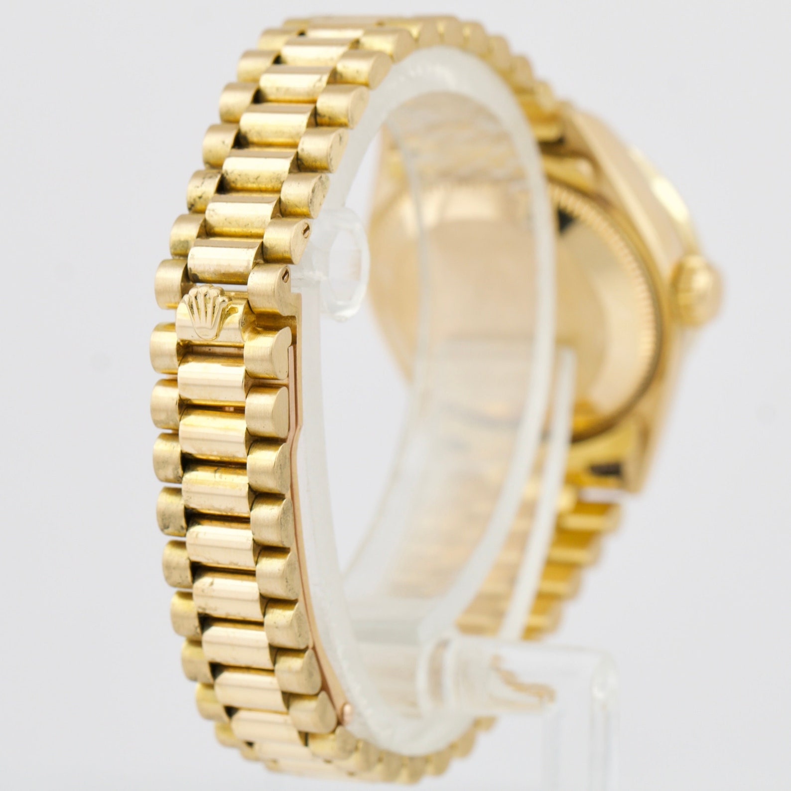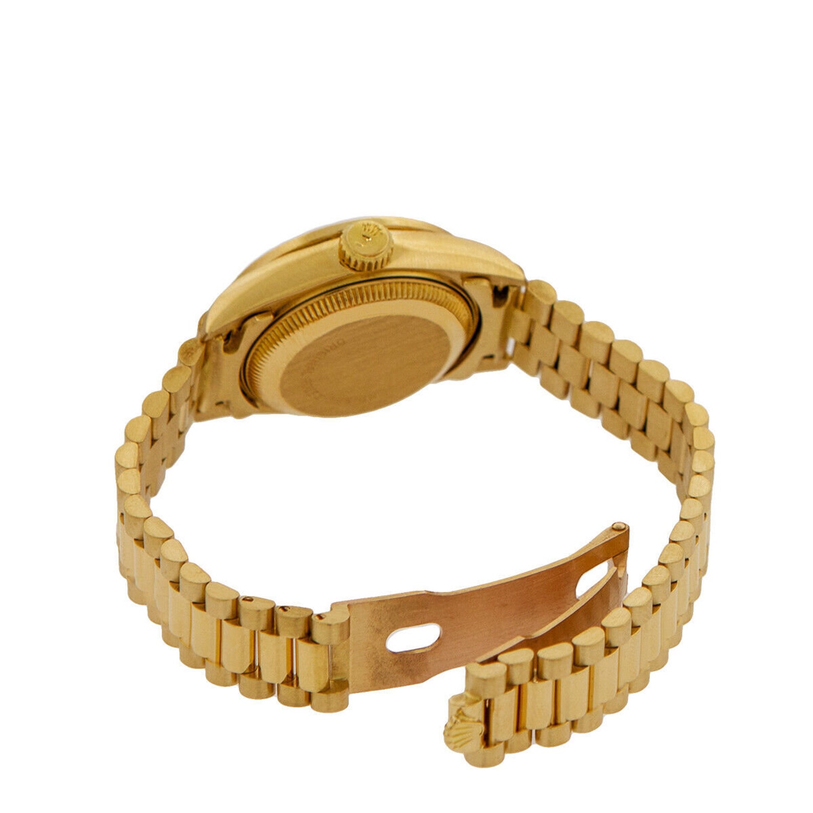 - 18ct yellow gold case and bracelet featuring a concealed Crown clasp.