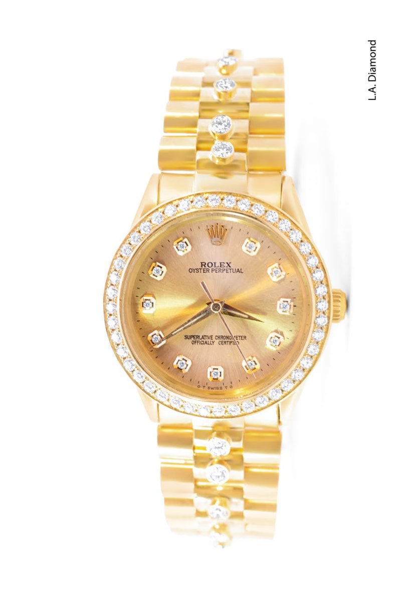 - Rolex Oyster Perpetual 34mm Champagne Diamond Dial.