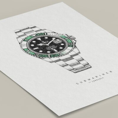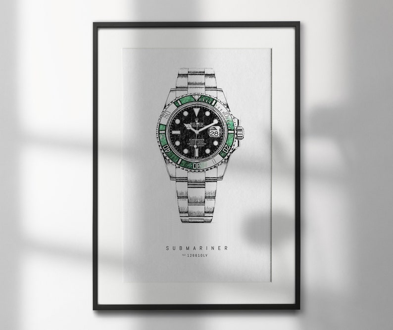 - A stylish and unique way to display your passion for horology and elevate your living space with a touch of class. This stunning print is a must-have for any Rolex enthusiast, bringing a sophisticated and timeless aesthetic to any room. The attention to detail in this piece makes it a true collector's item, perfect for showcasing your appreciation for fine craftsmanship and luxury timepieces. Add a touch of elegance to your home or office with this exquisite Rolex Submariner art print.