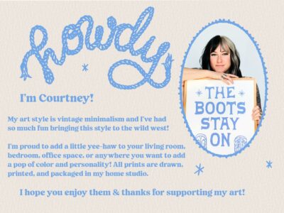 - This stunning gicle print from Tumbleweed captures the rugged charm of the American West. The tumbleweed motif and vintage cowboy aesthetic bring a touch of nostalgia to your home, creating a warm and inviting atmosphere. Printed on premium archival paper, this fine art print fors lasting quality and vibrant colours. Its positive message encourages a carefree spirit, making it a perfect addition to any living space, study, or bedroom. The print arrives unframed, allowing you to select a frame that perfectly complements your existing dcor and personal style. Bring the iconic imagery of the Wild West into your home with this beautiful and inspiring piece of art.