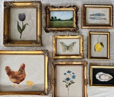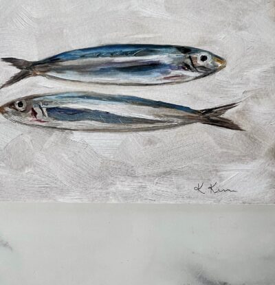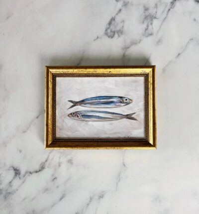 - Unframed oil painting print of a captivating still life featuring sardines.