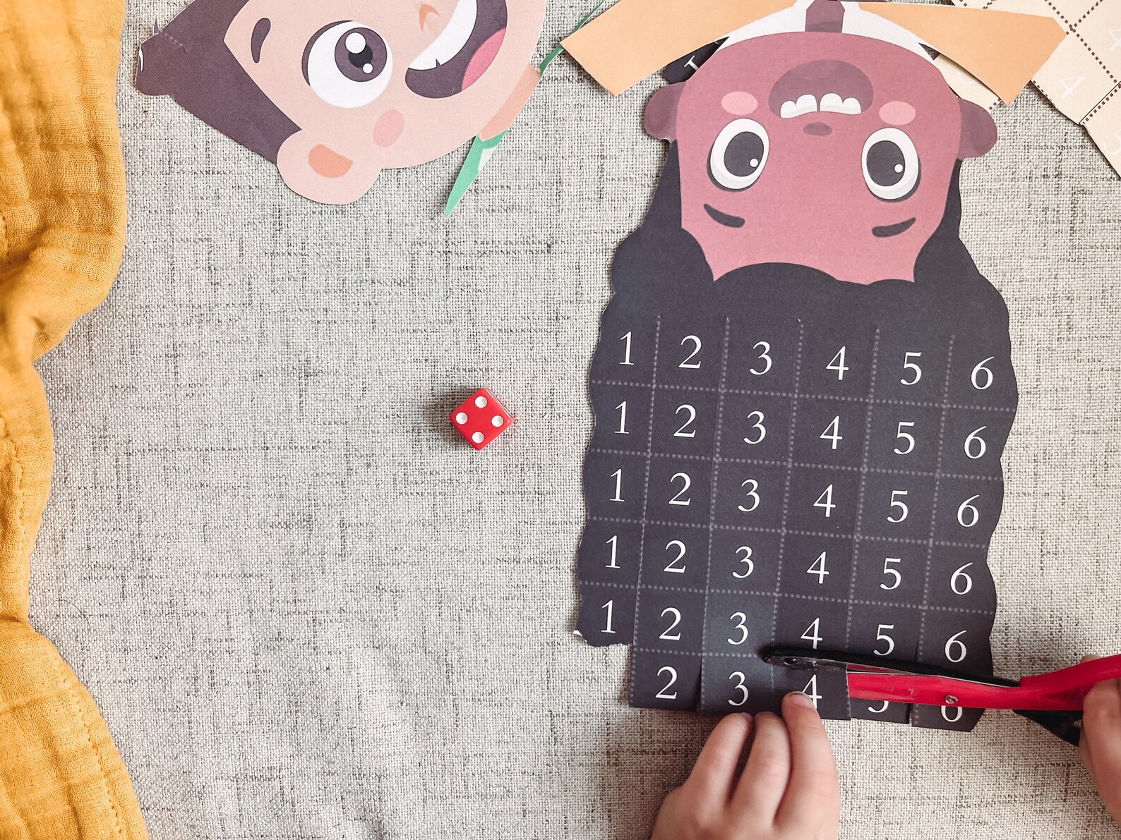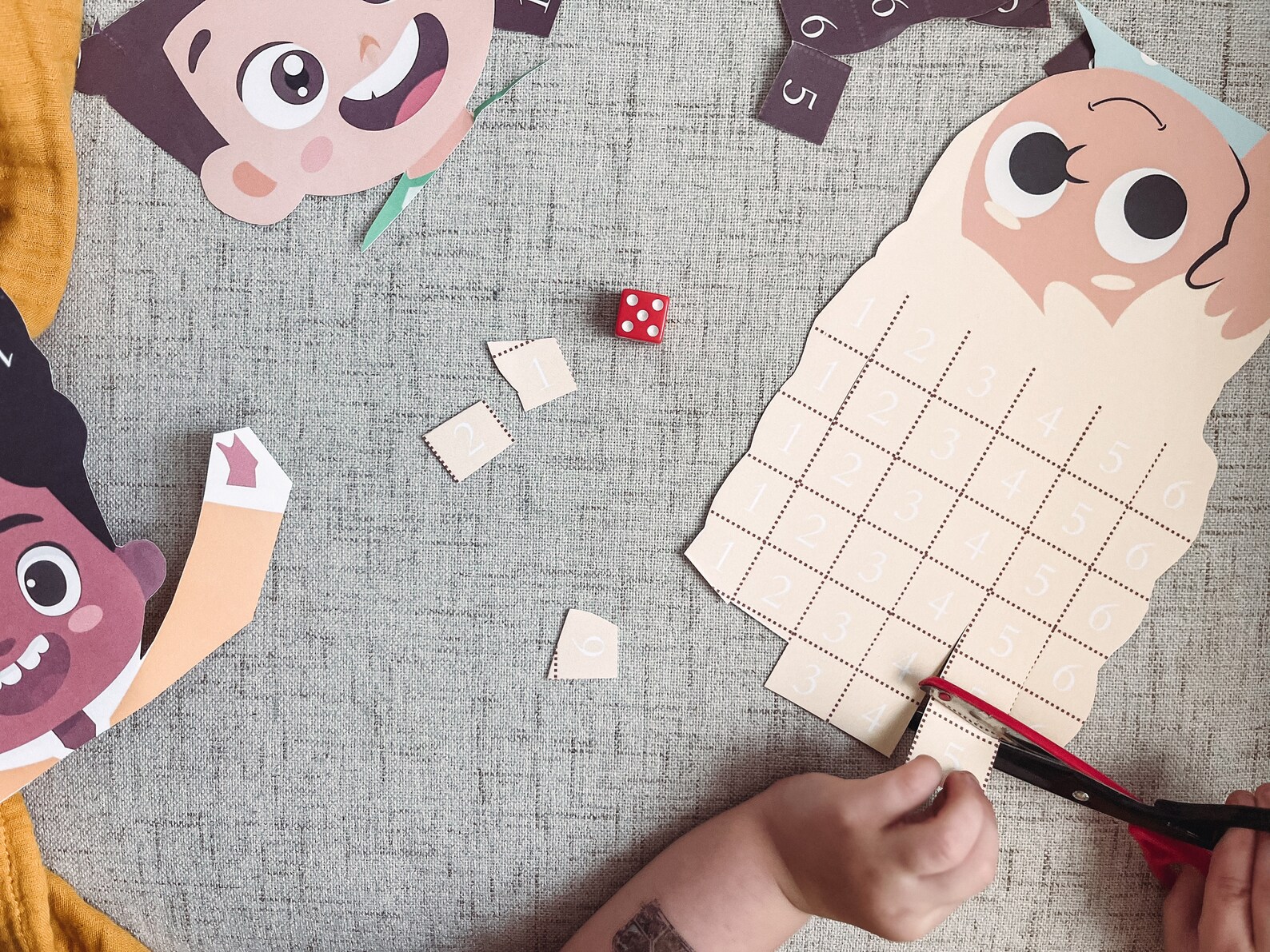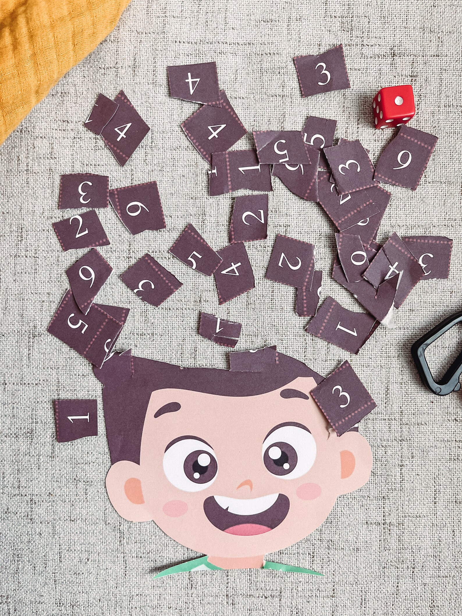 - Educational Activity: The dice feature numbers and scissor icons, encouraging counting skills, number recognition, and scissor co-ordination.