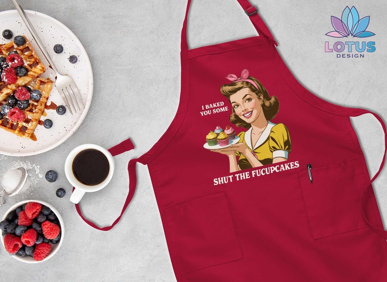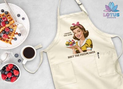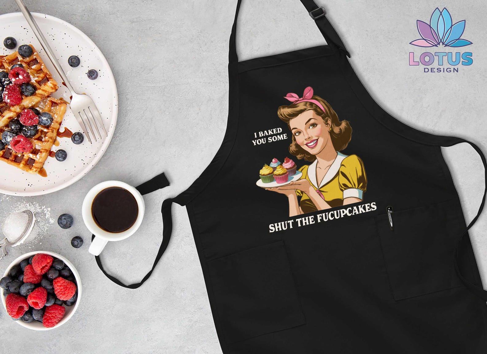 - Shield your clothes from splashes and spills with this cheeky "Shut The Fucupcakes" apron.