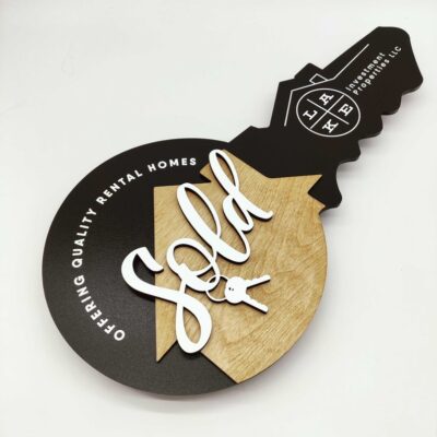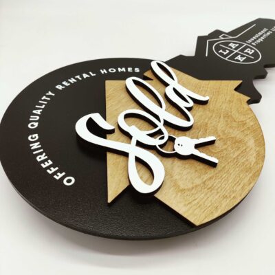 - Commemorate a property sale with this custom-engraved "Sold" key sign. A perfect way to celebrate a successful transaction.