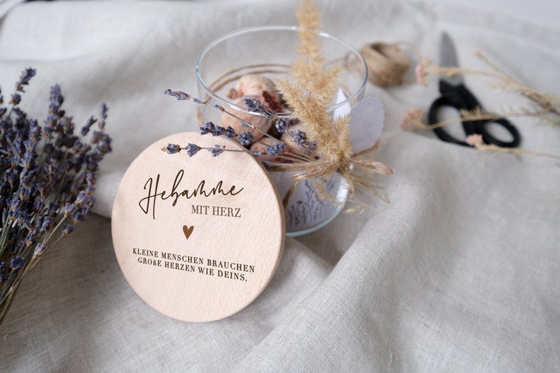 - The lid is engraved with the words "Midwife with Heart," adding a personal touch to this charming item.