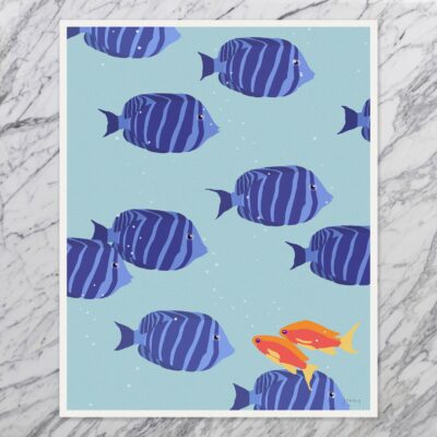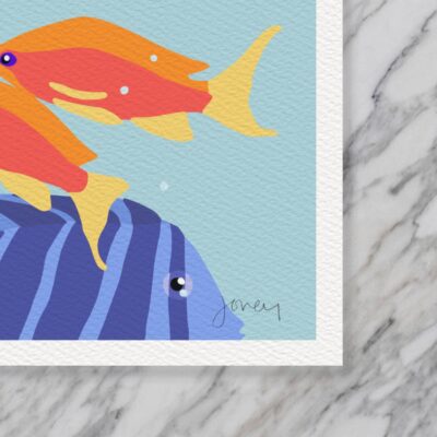 Striped Blue Fish Art Print Signed by Jorey Hurley Unframed or Framed (240211)