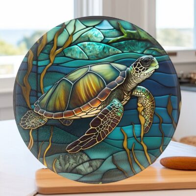 - A captivating turtle-shaped chopping board crafted from durable tempered glass.