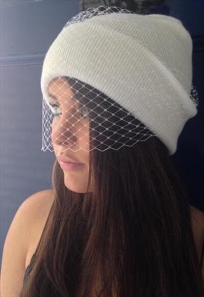 - A stylish and versatile beanie hat, complete with an elegant veil for a touch of mystique.