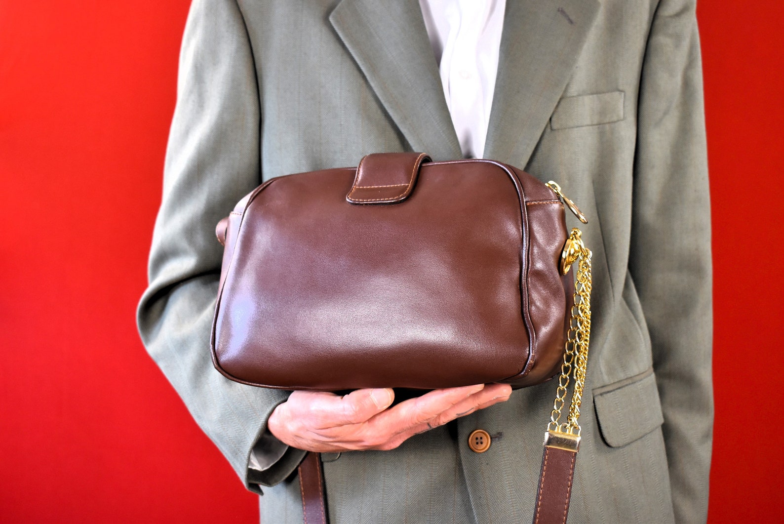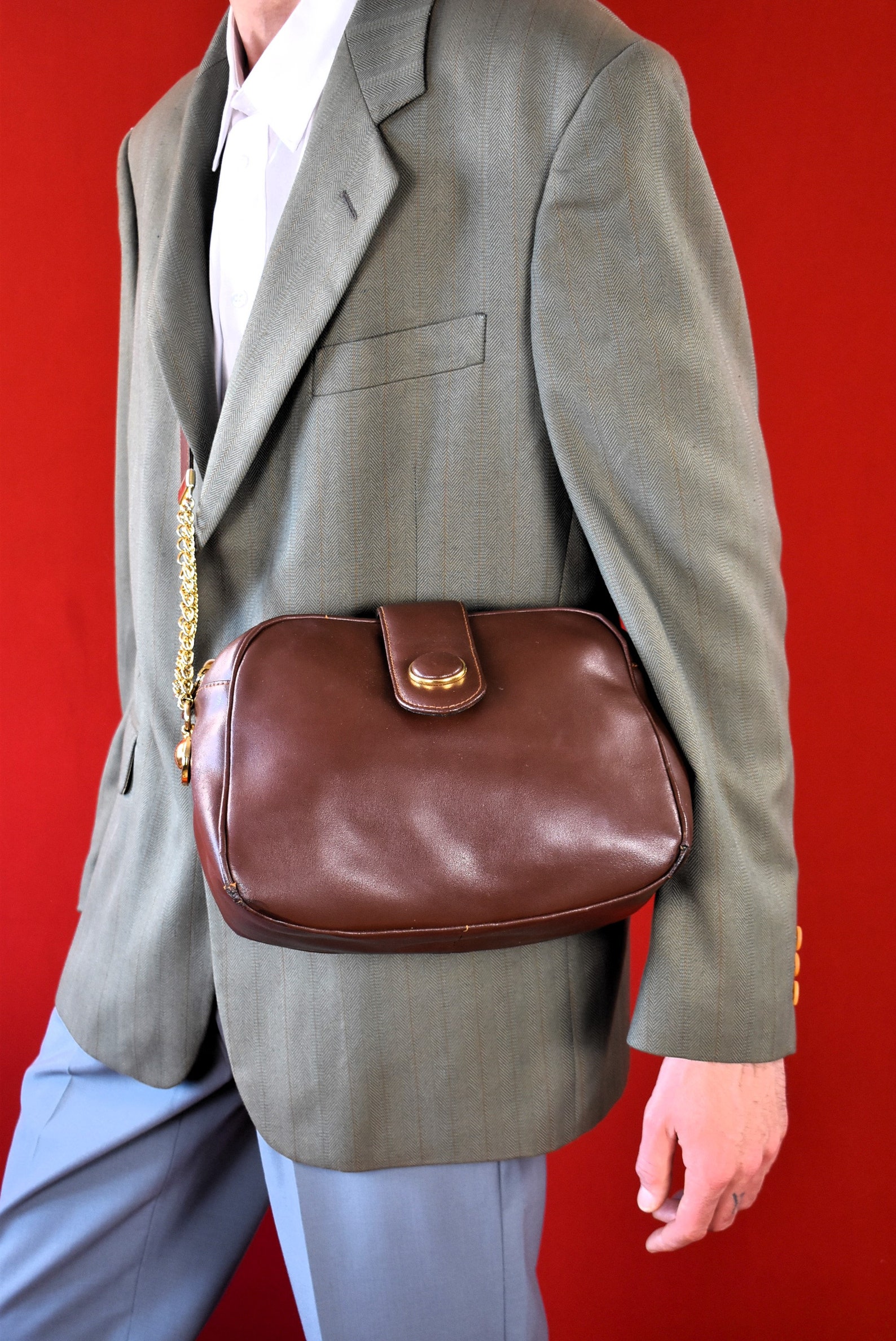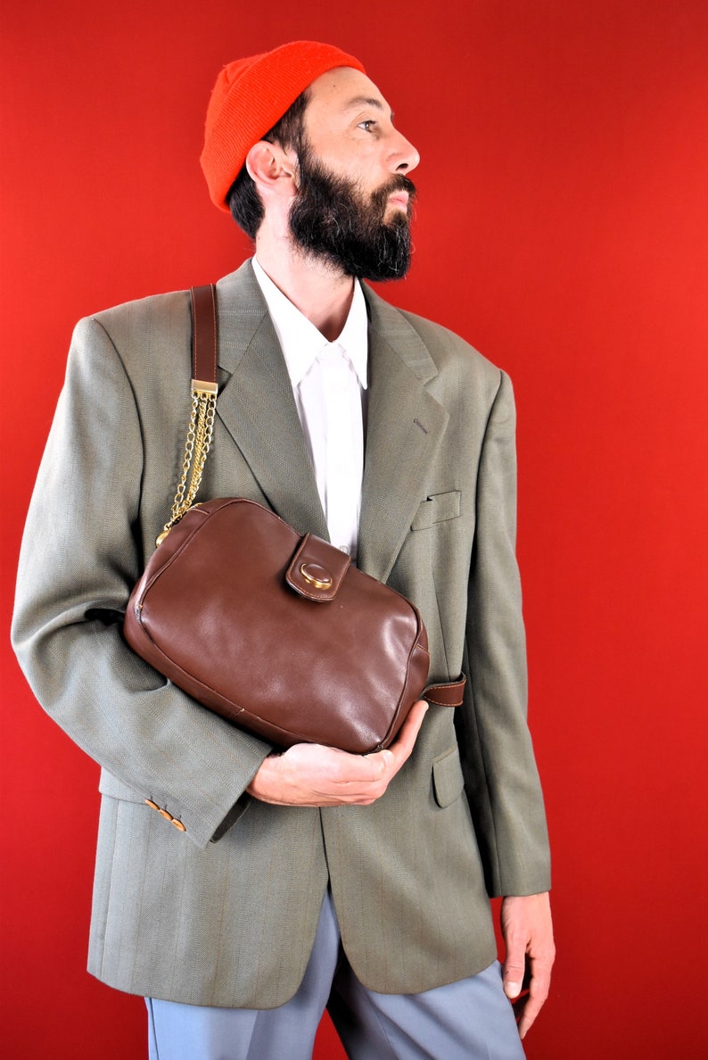 - Perfect for everyday use or special occasions. This vintage 80s leather shoulder bag is a timeless classic. Made in France from supple, genuine leather, it features a stylish gold-tone chain strap for crossbody wear. The spacious interior includes a handy zip pocket to keep your essentials organised. Wear it on your shoulder, across your body, or as a messenger bag ideal for adding a touch of vintage chic to any outfit, whether you're popping to the shops or heading out for a special occasion. A truly versatile and stylish addition to any wardrobe.