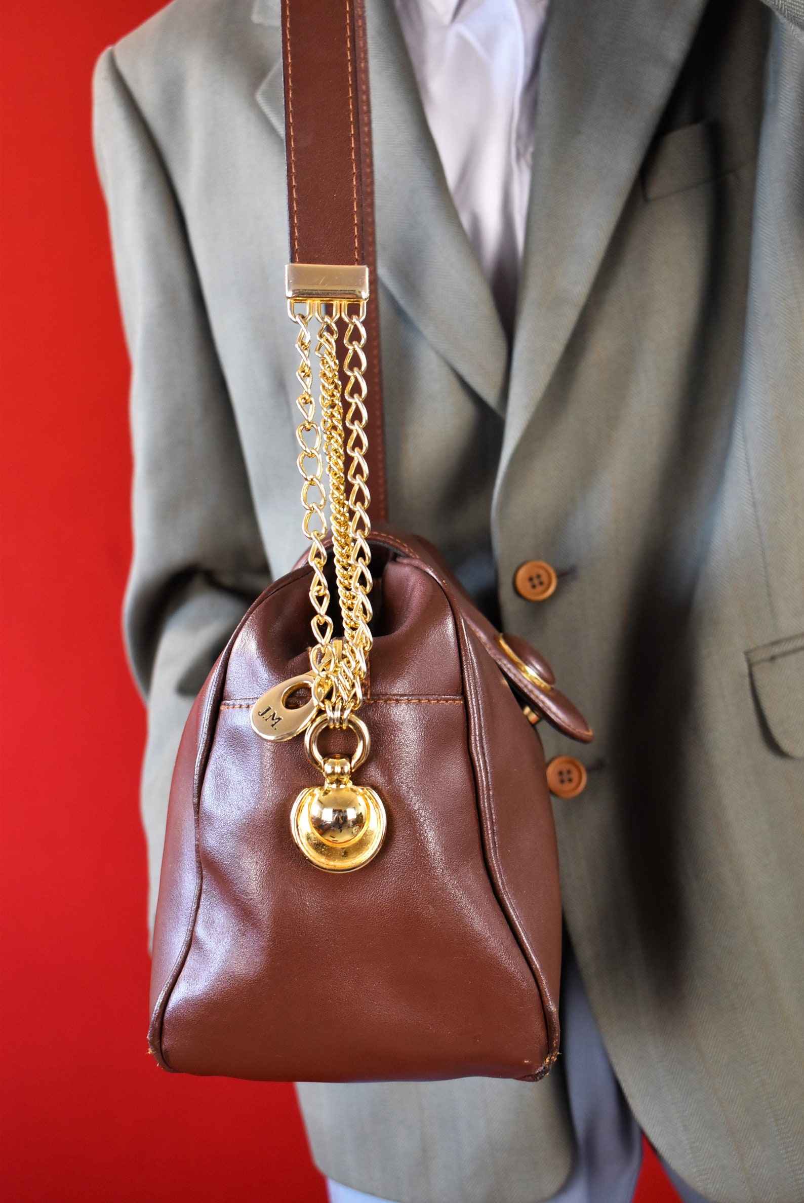 Timeless Treasure 80s Vintage Leather Shoulder Bag with Gold Chain