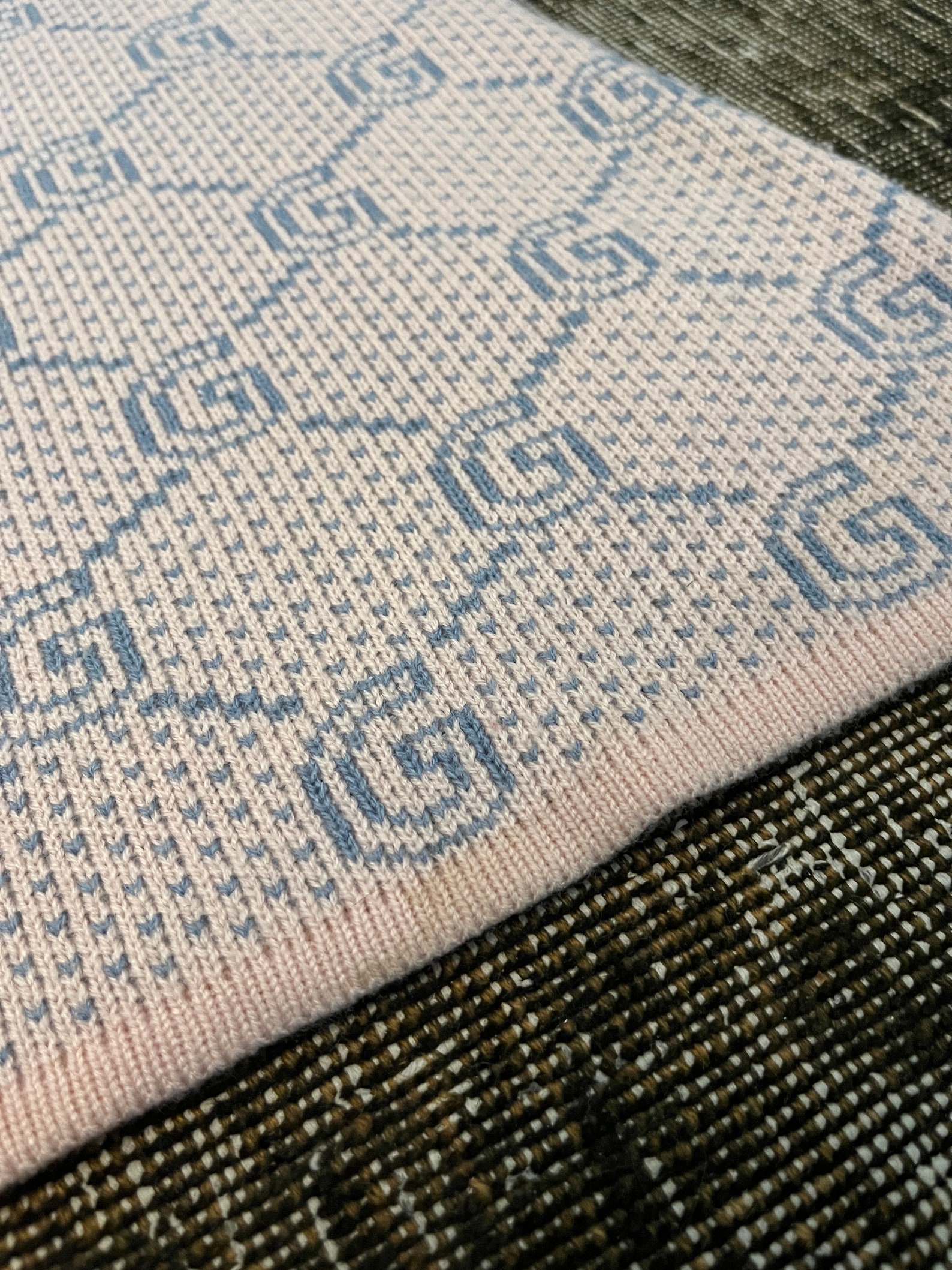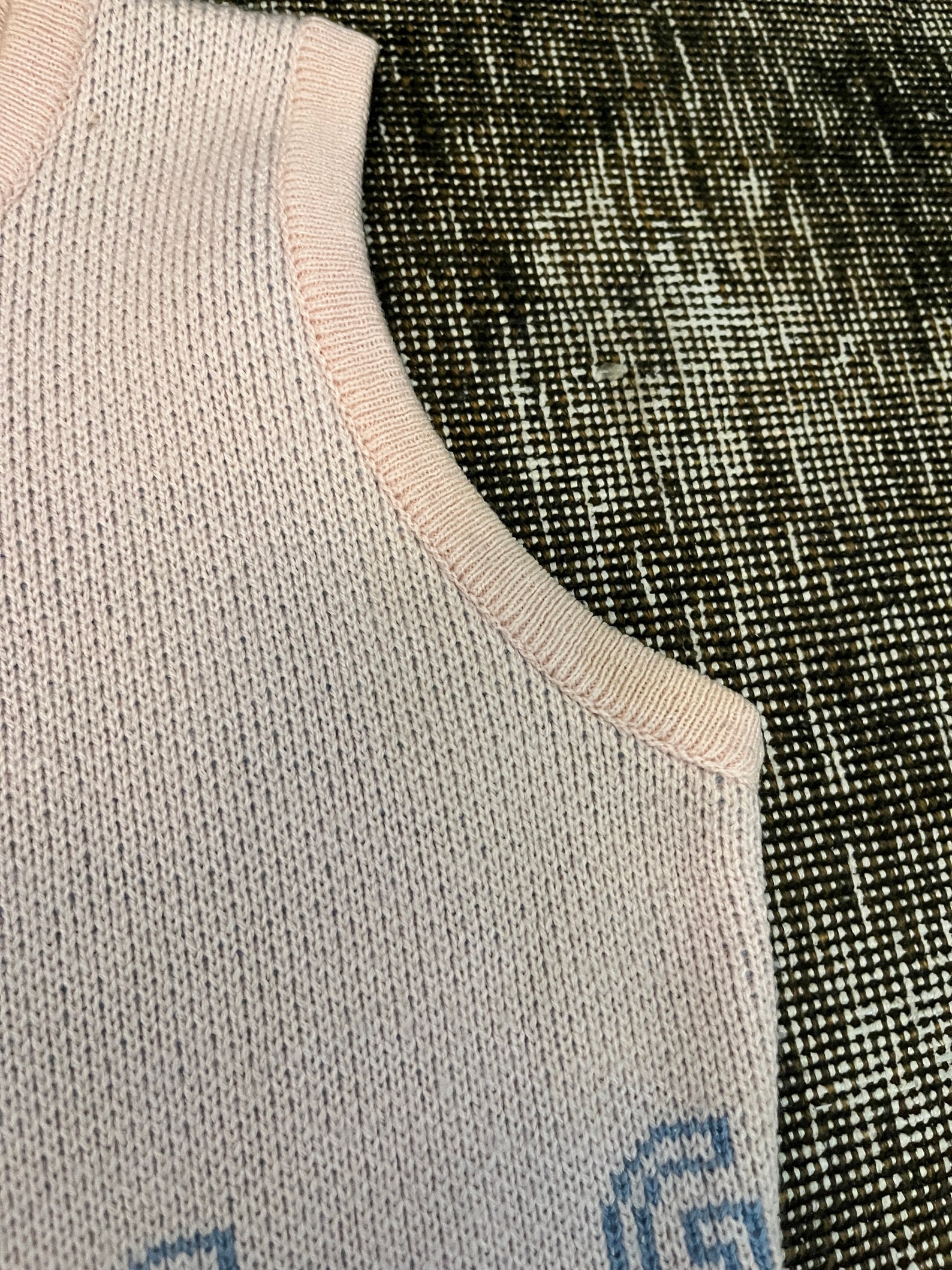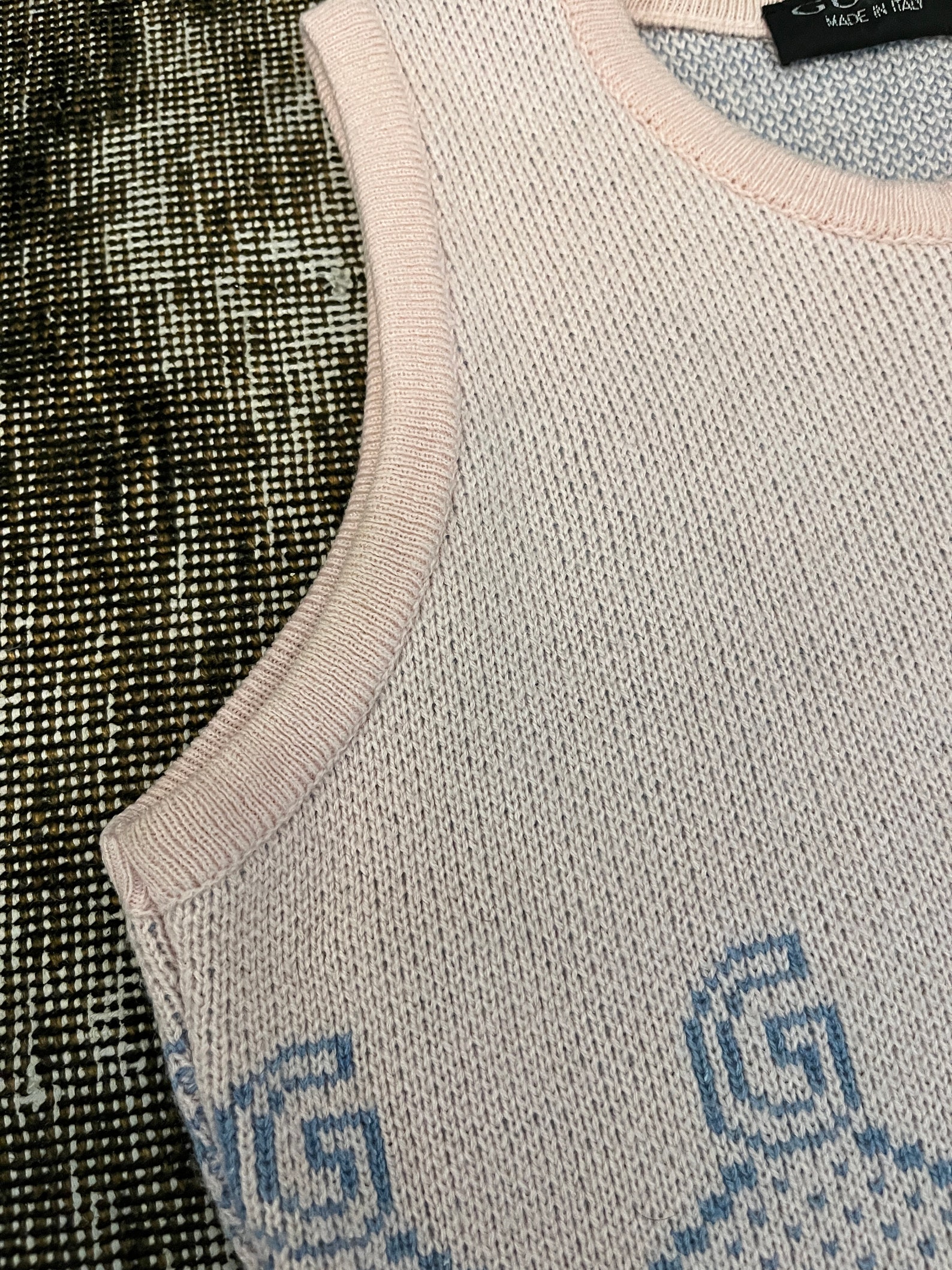 Vintage Gucci Logo G Pink & Baby Blue Knitted Mini Dress – A Timeless Fashion Statement