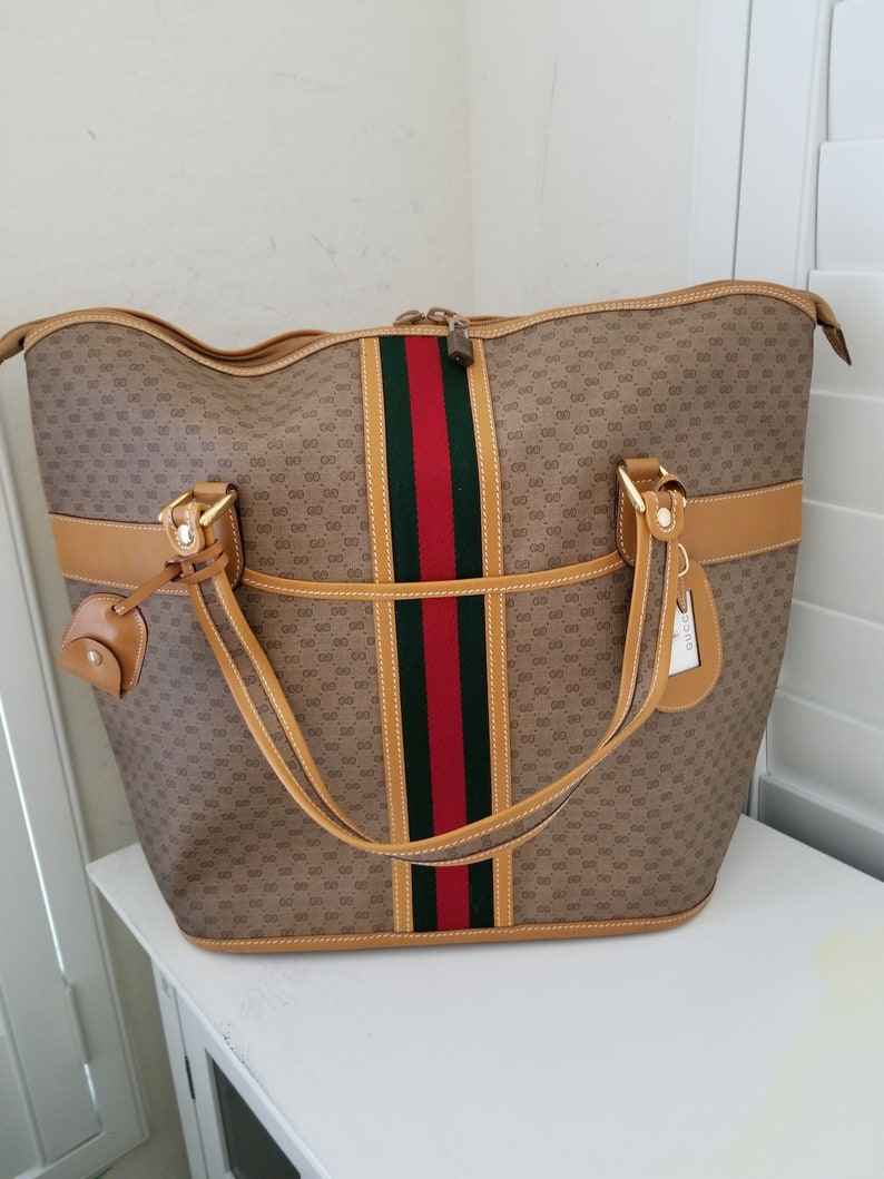 - Vintage Gucci Supreme Large Travel Tote with lock and key.