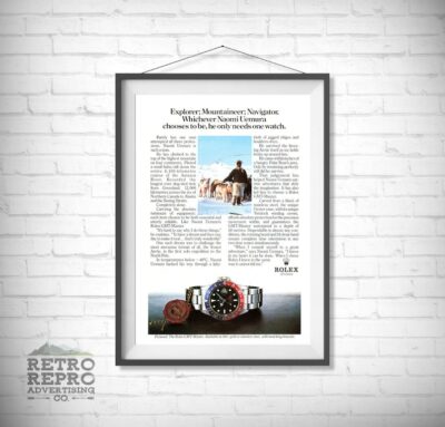This vintage advertisement showcases the iconic timepiece in stunning detail, highlighting its classic design and timeless appeal.