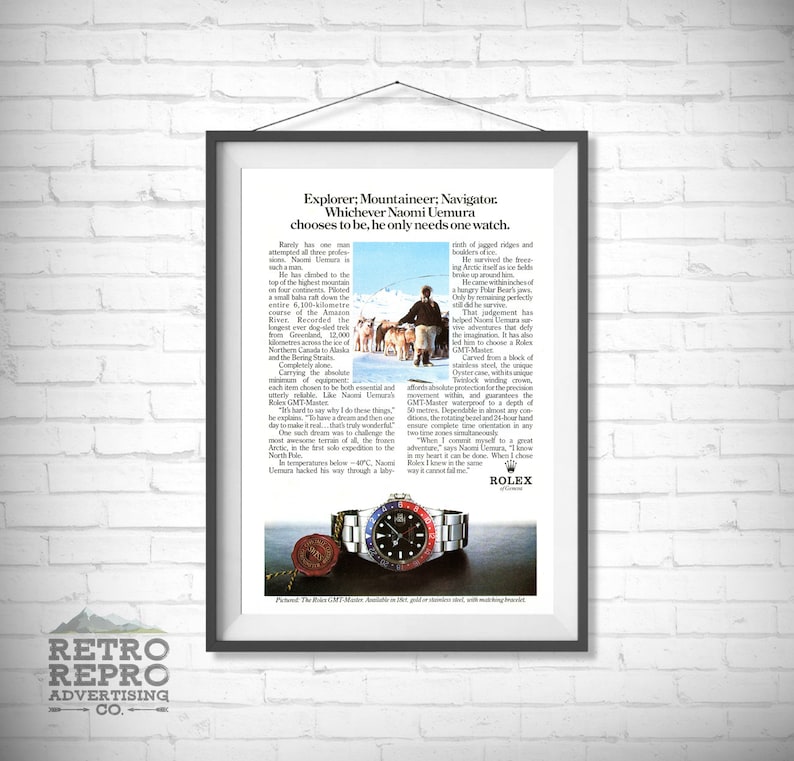 Own a bit of horological history with this genuine 1982 Rolex GMT Master watch advert.