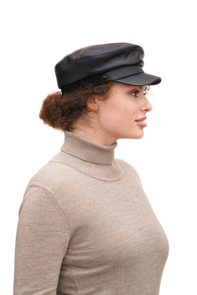 - This stylish baker boy hat is the perfect accessory to elevate your look. Crafted from high-quality faux leather, it offers a luxurious feel without the hefty price tag. The classic peaked design adds a touch of timeless elegance, while the comfortable fit fors you can wear it all day long. Available in a variety of colours, you're sure to find the perfect match for your wardrobe. Whether you're dressing up for a special occasion or simply adding a touch of flair to your everyday outfit, this baker boy hat is a must-have. A fashionable and affordable way to stay on-trend.