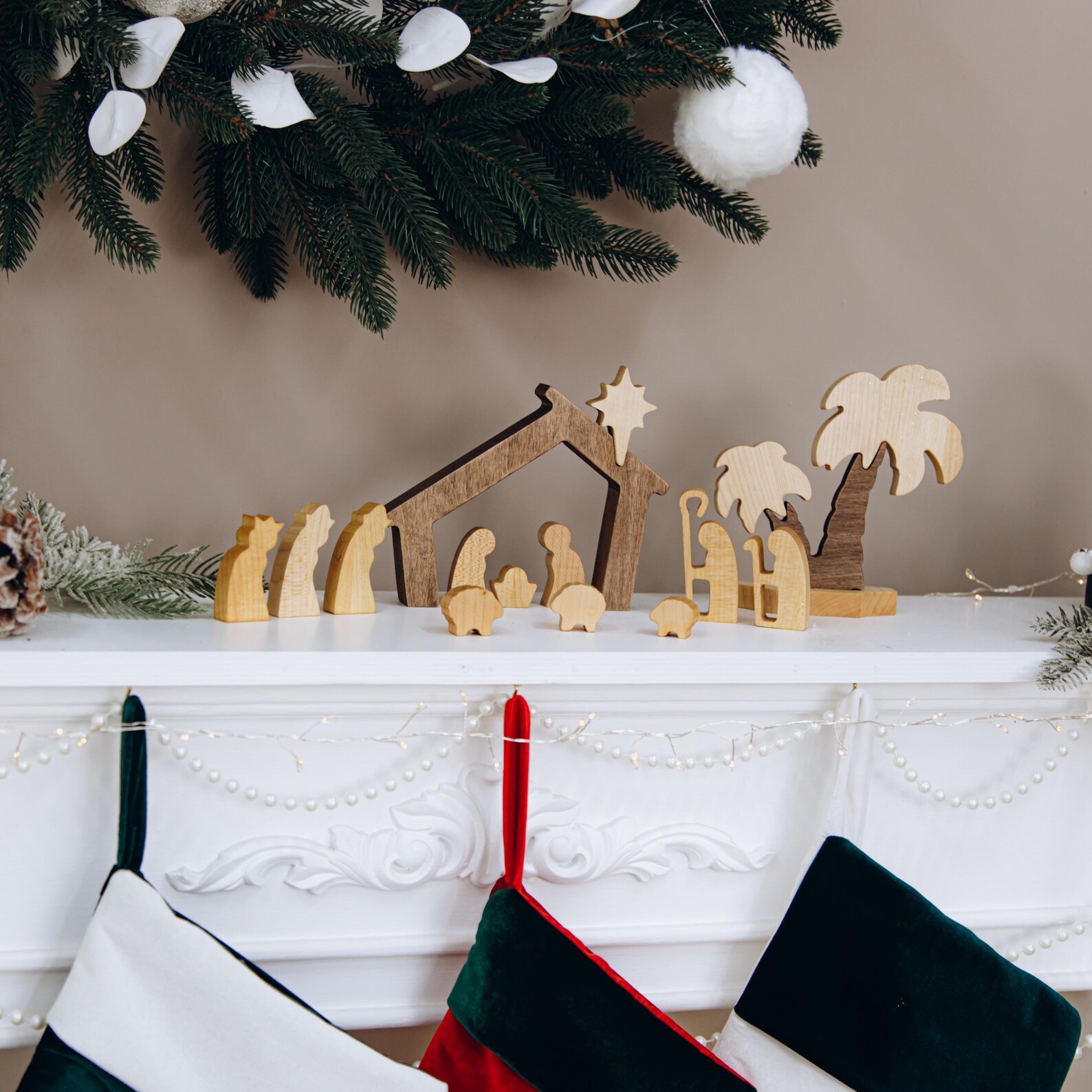 Handcrafted Wooden Nativity Set – Waldorf Style Christmas Crib Scene Decoration
