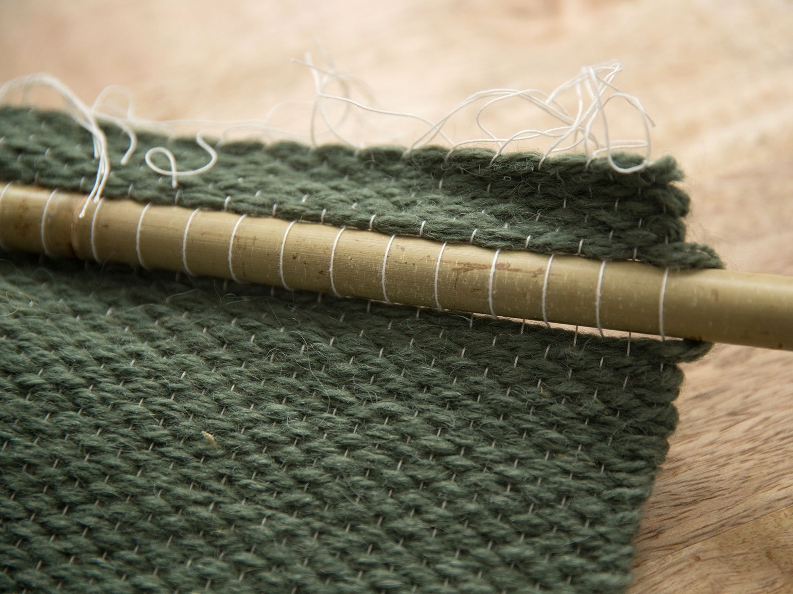 Luxurious Wool Details: The addition of plush wool elements adds a layer of luxurious texture and visual interest. The wool's natural fibres create a cosy and inviting atmosphere. This macram wall hanging is perfect for adding a touch of bohemian style to your home. It's a unique and eye-catching piece that will be sure to impress your guests. The earthy green tones and soft wool accents create a warm and inviting atmosphere.
